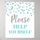 Please help yourself sign for baby shower, bridal shower, birthday party or wedding in light blue and silver confetti pattern. Please note glitter effect is photographic effect only.