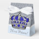Elegant royal blue and silver prince crown baby shower favour boxes. These beautiful blue and silver prince baby shower favour boxes can be personalised with text and you can change the ribbon colour.