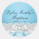 Blue Silver Damask & Bow Baptism Sticker