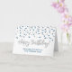 Business from all of us birthday card with dark navy blue and silver fun confetti pattern. Perfect for employees. Customizable, also available in other cards.