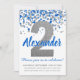 Blue Silver Glitter Confetti Boy Second Birthday Invitation