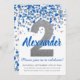 A cute and fun Blue Silver Glitter Confetti Boy Birthday Party Invitation for a little boy or girl!
