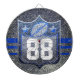 Faux glitter sparkles behind a bold jersey number. Easily update the football player's number to your favourite team player or your own jersey number. Available in other sparkly team colours.