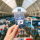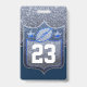 Faux glitter sparkles behind a bold jersey number. Easily update the football player's number on the front and personalise the info on the back. Available in other sparkly team colours.