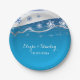 This paper plate is perfect for a winter wedding, with its beautiful blue, silver grey, and white snowflake design. The waved band in silver grey is adorned with stars, while the blue snowflakes add an elegant touch to the glowing gradient sky blue background. This modern and contemporary design is perfect for those who want to add a touch of style to their traditional wedding. It's not just for weddings, though - this plate is also great for bridal showers, receptions, engagements, and anniversary parties. With its elegant, classy, and stylish design, it's the perfect choice for any winter event, especially those in December or around Christmas time.