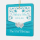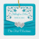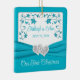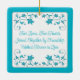 This personalised and romantic commemorative ceramic ornament of your first Christmas together as a married couple is sure to be a yearly reminder of your wedding day and the union you made. The square ceramic ornament design area has a turquoise blue ribbon and joined hearts image across the centre on the front side. There is a main turquoise blue and white background colour that has turquoise floral arches above the ribbon with a turquoise blue border. Below the ribbon in white, the words, "Our First Christmas" are printed in the same script font that is used on all the matching pieces of the wedding set. Above the ribbon, the names of the happy couple and the wedding date are printed in turquoise. The backside of this 1st Xmas together ornament is just as pretty as the front side but in place of the ribbon and hearts there is the same romantic verse that was on the wedding invitation, "Two lives, two hearts, Joined together by friendship, United forever in love" on it. This would also make a lovely surprise for the couple if given as a gift at a bridal or wedding shower. If you need any other matching items, please email niteowlstudio@gmail.com and watch your spam/junk folders for my reply, or use the Zazzle chat feature to contact me.
