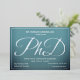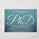 A PhD graduation party invitation with silver foil, white text, and a blue background. Simply add your information, add this invitation to your cart, and celebrate this major accomplishment.