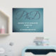 A PhD graduation party welcome sign poster with silver foil, white text, and a blue background. Simply add your information, add this poster to your cart, and celebrate this major accomplishment.