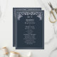 Unveil the magic of your big day! These mediaeval fantasy wedding programs feature a regal lion surrounded by intricate silver florals and a monogram against a navy blue background, blending elegance with a touch of grandeur. A perfect keepsake for your fairytale celebration! The silver featured on this item is NOT real foil and is printed in flat colours.