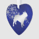 This pretty Christmas ornament will make a wonderful keepsake gift for any one who loves a Bulldog! It features a silver silhouette bulldog image in front of a spray of ornate silver snowflakes. The image is placed on a gradient deep blue background. The back of the ornament has the same blue background and snowflakes, and a text field for you to customise.