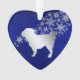 This pretty Holiday ornament will make a wonderful keepsake gift for any one who loves a Pug! It features a silver silhouette Pug dog image in front of a spray of ornate silver snowflakes. The image is placed on a gradient deep blue background. The back of the ornament has the same blue background and snowflakes, and a text field for you to customise. Beautiful!