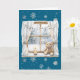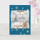 Blue Silver Snowflakes Window Teddy Bear Christmas Card