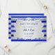 An elegant Save the Date card featuring a navy and royal striped design with silver and lovely tiny pearls. The back of the card features your own favourite photo.