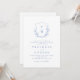 Minimalist blue and white wedding invitation, with your monogrammed initials framed by elegant crest and hand illustrated botanical leaves on the top, your event details are shown below in modern script and classic font. Simple and luxury. Great for modern classic wedding, simple formal wedding, elegant botanical garden wedding.
