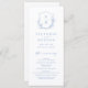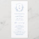 Monogrammed initials framed by elegant crest and hand illustrated botanical leaves, your event details in elegant script and classic font, simple and luxury. Great blue and white programs for modern classic wedding, simple formal wedding, elegant botanical garden wedding.
