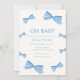 Blue Simple Bow Frame Boy Baby Shower Invitation