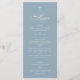 Blue Simple Elegant Cross Calligraphy Baptism Menu features a delicate modern cross, paired with modern type and beautiful calligraphy script.