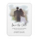 "Blue Simple Elegant Modern Script Watercolor Photo Save the Date." Elegant and understated, this photo Save the Date magnet features your engagement photograph under a soft pink watercolor wash that will add a romantic filtered effect. A lovely and useful keepsake gift for family and friends. Art by internationally licensed artist and designer, Audrey Jeanne Roberts, copyright.