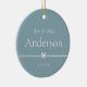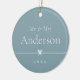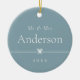 Sweet and simple photo ornament for your first Christmas as a married couple features a minimalist layout, with your titles (shown with "Mr & Mrs"), surname, and the year in clean, classic serif typeface on a soft blue background. A petite bow through the centre completes the design. Add a wedding photo to the reverse side.