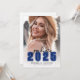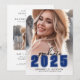 Classic Minimalist Graduation Announcement & Party Invitation. The front features a full-page photo with a white gradient at the bottom that fades seamlessly into the image. Over the gradient, "2026" appears in a bold, classic school-style font in blue. Above the year is "Graduate" in a script font, which can be changed to "Class of" if preferred. Below the year, the graduate's name and school name are elegantly featured. The current design uses black and blue tones for a timeless and sophisticated look, but all colours can be customised to match school colours or personal preferences.