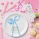Blue Simple Polka Dot Bow Baby Shower Paper Plate