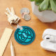 This circular motif on a glowing blue background uses the Celtic Knotwork technique, where a single continuous loop of ribbon is interlaced to form an intricate pattern.
