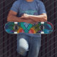 Blue Skateboard Deck With Rainbow Koi Fish Design