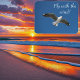 With its beautiful photography, this design features a seagull photographed from below, with its wings outstretched as it flies upwards towards the heavens. The body of the bird is a pristine white, while the tail and wings are also white, with grey underneath. And the far edges of the wingtips are black, then white, then black again, before the grey starts, going from the outside towards the body. Against a deep blue sky background, this magnet is a sight to behold.