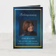 An elegant 4-page program. A dark blue sky as background, a faux gold frame, and space for your photo on the front. Personalise and add name, dates and your text. White text.
