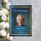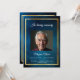 An elegant 2-page program. A dark blue sky as background, a faux gold frame, and space for a photo. Personalise and add name, dates and your text.