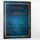 An elegant tri-fold program. A dark blue sky as background, a faux gold frame and space for your photo. Personalise and add name, dates and your text.
