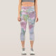 Blue Sky Green Plant Leaves Purple Flowers Capri Leggings