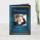 An elegant 4-page program. A dark blue sky as background, a faux gold frame, and space for your photo on the front. Personalise and add name, dates and your text. White text.