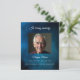 An elegant 2-page program. A dark blue sky as background, space for a photo. Personalise and add name, dates and your text.