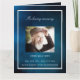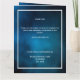 An elegant 4-page program. A blue sky as background, a faux silver frame, space for your photo on the front. Personalise and add name, dates and your text.