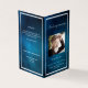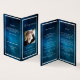 An elegant 4-page program. A blue sky as background, a faux silver frame and space for your photo. Personalize and add name, dates and your text.