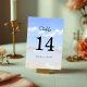 Elevate your wedding decor with these minimalist yet stunning watercolor table number cards, featuring a serene gradient of blue and gold sunset skies. Perfect for couples seeking sophisticated, cohesive stationery that complements a celestial, garden, or luxury wedding theme.