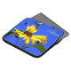 Impossible blue sky and bright yellow sunflowers n bumblebees on this laptop sleeve you can personalise with your name.