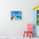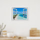 Relaxing tranquil sea and blue sky view, fake window scene, for a windowless office wall. Fun, realistic optical illusion scenic poster for an office or study wall.