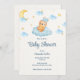 cute baby showerblue bear themeadorable invitationsleepy bear designcustomisable party invitegender neutralwoodland animalsbaby boy showersweet dreamsblue and white colour scheme