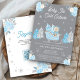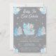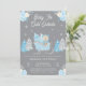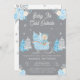Blue Sleigh Cute Teddy Bear Grey Baby Shower Invitation