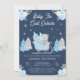 Blue Sleigh Cute Teddy Bear Navy Baby Shower Invitation