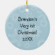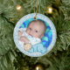 Baby's 1st Christmas customisable keepsake ornament with a sleeping baby boy in a blue sleeper and soft snowflake design. You can easily customise this ornament with baby's photo and add your own text to the back. It's great as a 1st Christmas gift and will be a memento for years to come.