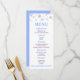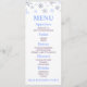 This is a blue snowflake winter wonderland themed birthday party menu.