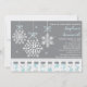 A pretty snowflake mobile hangs above a baby crib on these eggshell blue, grey, silver and white snowflake and winter wonderland themed baby shower invitations for a boy. Artwork © Chrissy H. Studios, LLC. All Rights Reserved.