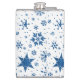 Vibrant blue snowflake pattern on a white background, featuring diverse shapes and sizes. Ideal for winter, holiday, Christmas themes, greeting cards, and festive design projects.