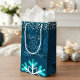 “Peace, joy & love.” A giant, fun, playful, white and turquoise snowflake illustration and modern typography on a rich, deep teal blue marble watercolor background help you usher in the holiday season. A white and turquoise confetti dot border frames the top. Feel the warmth and joy of the holidays whenever you use this stunning, graphic, personalised small size gift bag. Matching envelopes, stickers, tote bags, wrapping paper, pillows, home décor, and more are also available. Turns a great present into something even better!