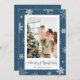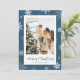 Blue snowflake photo Christmas card featuring snowflakes on a snowy blue background. Easily personalise this photo Christmas card with your photo and family name.