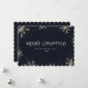 Dark blue Merry Christmas card featuring sparkling snowflakes. Easily personalise this minimalist, yet elegant holiday card with your text.