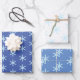 Three styles of icy blue snowflakes on different shades of blue or white for a three part wrapping paper set you can use for any winter holiday.